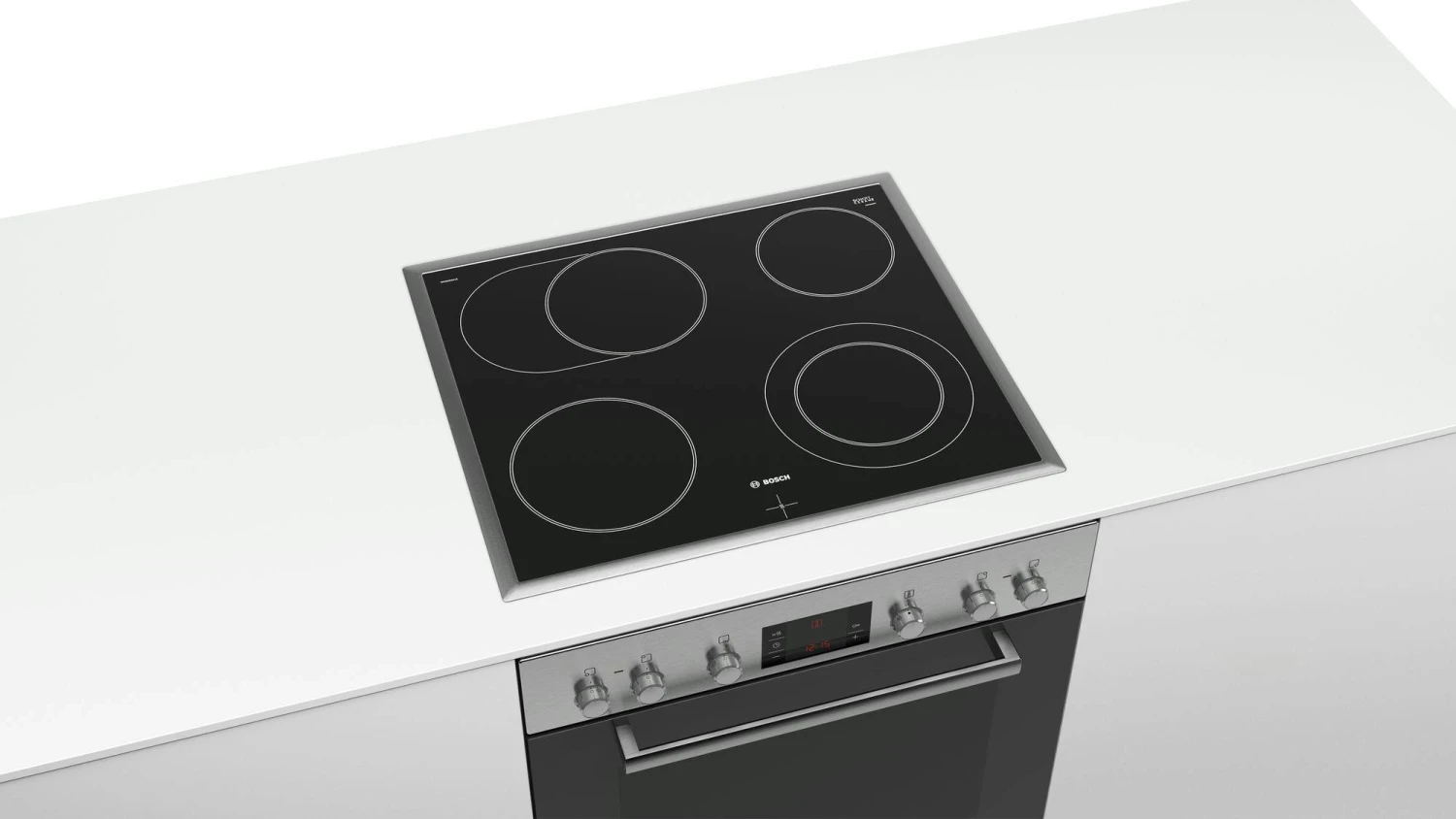 Bosch HND411LS61. Kochfeldtyp: Keramik, Anzahl Herdplatten/Kochzonen: 4 Zone(n), Art der Oberfläche: Glaskeramik. Ofentyp: Elektrischer Ofen, Netto-Ofenvolumen: 71 l, Ofenfarbe: Edelstahl
