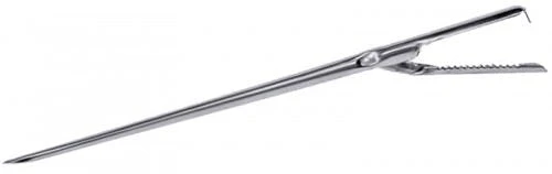 Spicknadel, aus Edelstahl 18/0, hochglänzend, mit gezahntem Endstück zur rutschfesten Sicherung des Speckstreifens