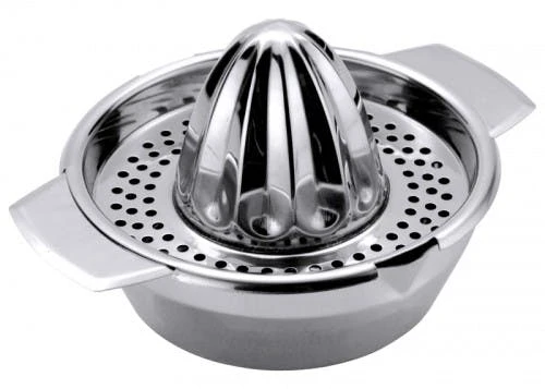 Zitruspresse, leichte Ausführung, verchromter Stahl, Pressschale aus Edelstahl, mit Auffangbecher