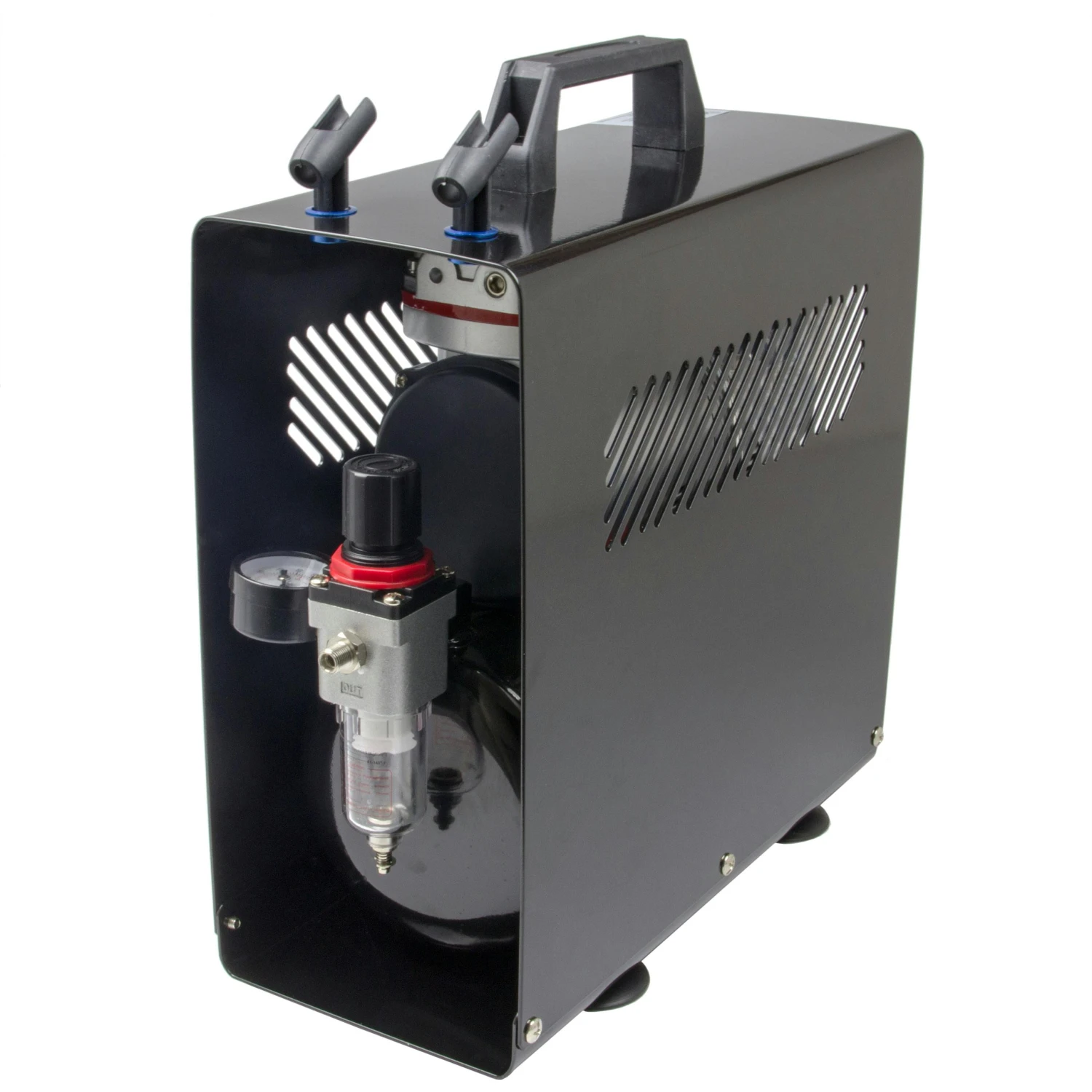 Airbrush Kompressor Saturn 25 mit DruckmindererDieses Set mit Druckminderer und 4-Fach Airbrushhalter bekommen Sie nur bei uns.