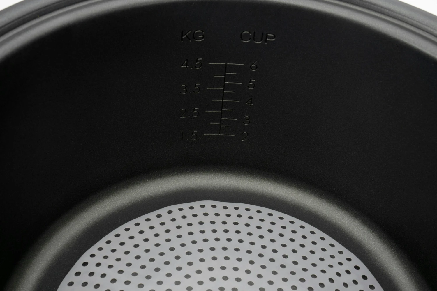 Durch die praktische Warmhaltefunktion kannst du dich während des Kochvorgangs in aller Seelenruhe um die Zubereitung anderer Leckereien kümmern. Der antihaftbeschichtete Innentopf sorgt dafür, dass dein Reis nicht am Boden anbrennt. Dabei hilft zudem die mitgelieferte Silikoneinlage für den Boden des Innentopfes.