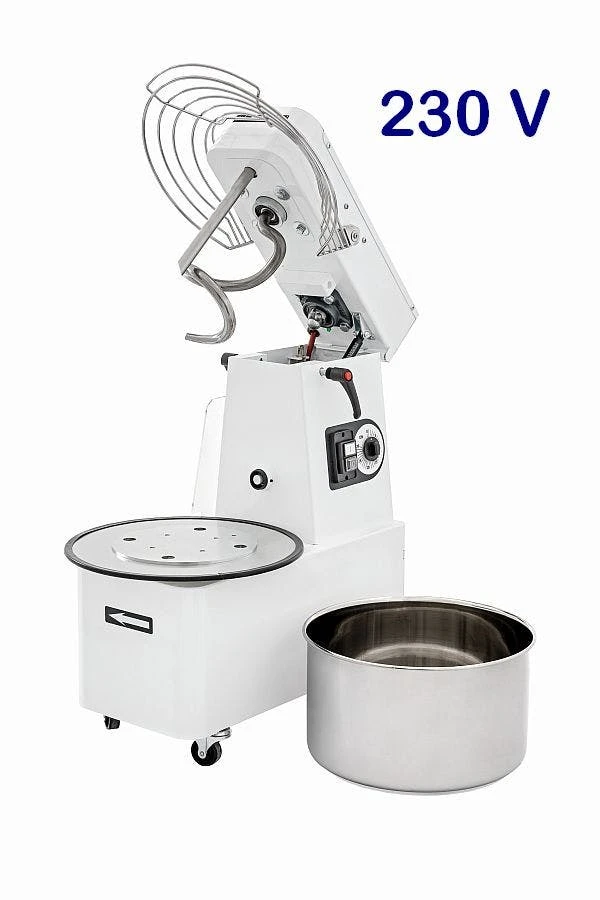 - Rührwerk, Kessel und Teigbrecher aus Edelstahl, fest montiert (nicht hochklappbar)